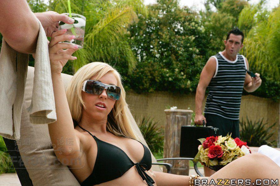 黑色比基尼金发美女模特户外庭院被男邻居搭讪全裸啪啪【16P】